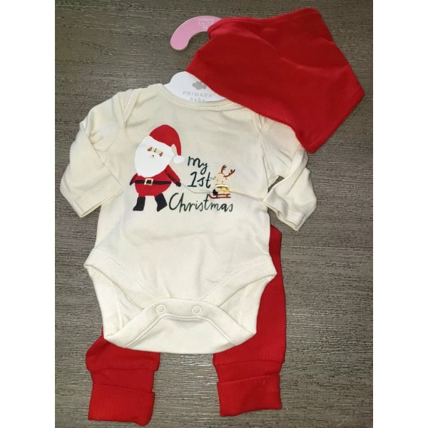 Primark NEW BABY'S FIRST CHRISTMAS 3 PC SET NEWBORN 7.5 LBS SANTA PANTS TOP BIB NWT