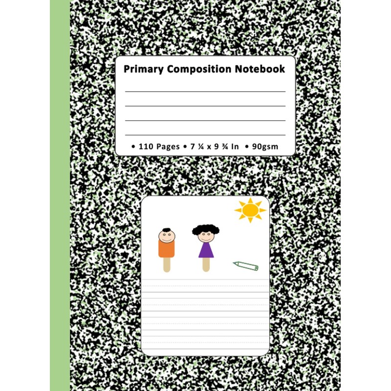 Primary Composition Notebook: 100 Pages, 9 3/4 x 7 1/4 Inches, Primary Journal Grades k-2 With Dotted Midline & Picture Space | Draw And Write ... Creative Story Writing - Green Marble Cover