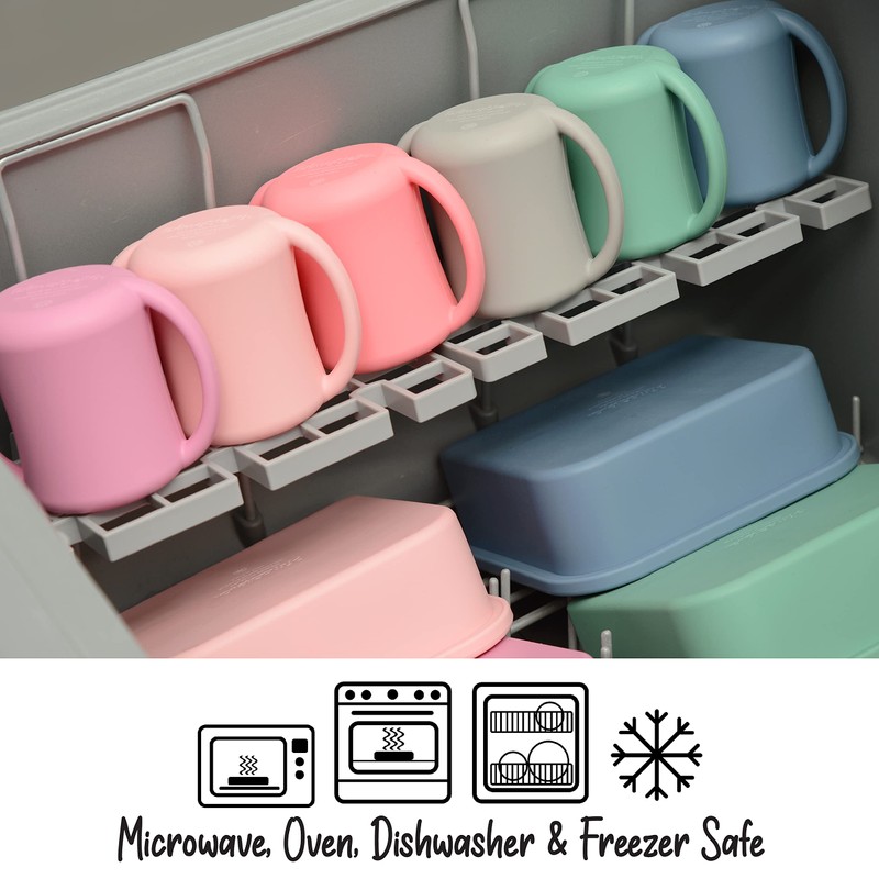- Top to bottom handles allow child to position their hands where it’s most comfortable, around the cup or along the handles