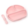 PrimaStella Divided Non-Slip Plate with suction and chewable spoon set in Soft Pink. Microwave, oven, dishwasher and freezer safe. Safety tested and always lead, BPA, PVC and Phthalate Free. Super durable and shatter proof.