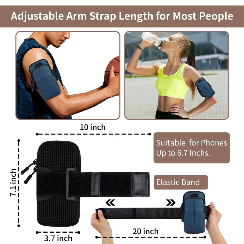 - [Universal Size]The arm band is 7.1*3.7 inches, which can fit a cell phone up-to 6.7 inches. Recommended for all iPhone and most Samsung phones.