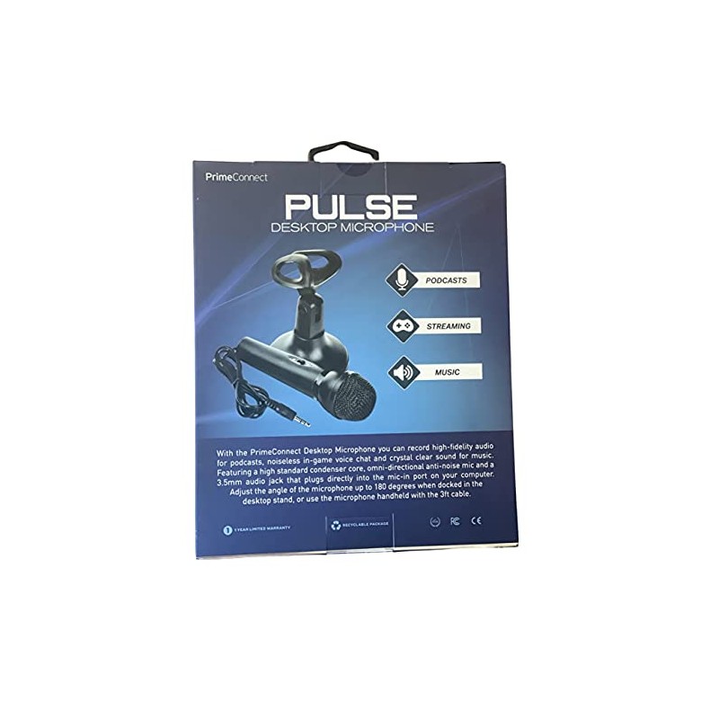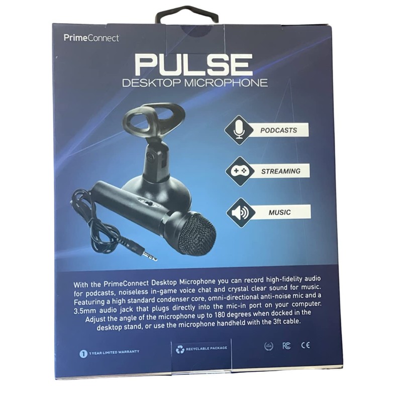 Prime Connect Pulse Desktop Microphone, USB, Unidirectional, Gooseneck