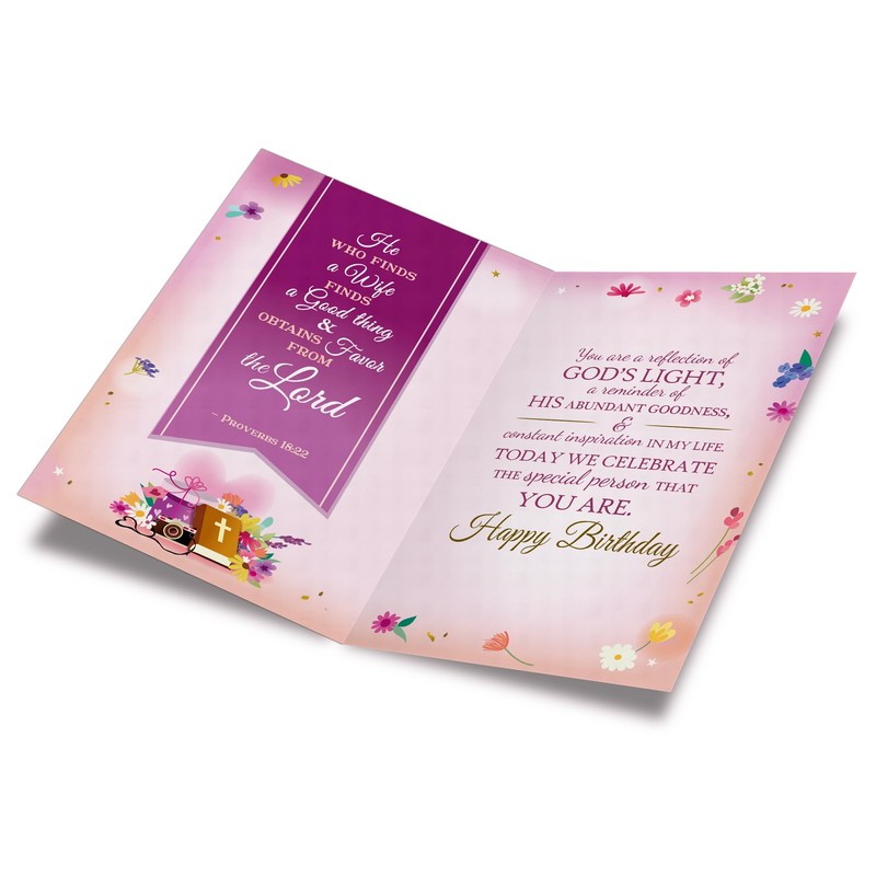 Prime Greetings Religious Birthday Card For Wife, Made in America, Eco-Friendly, Thick Card Stock with Premium Envelope 5in x 7.75in, Packaged in Protective Mailer