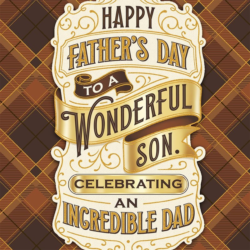 - Front Message: Happy Father's Day to a Wonderful Son. Celebrating an incredible Dad