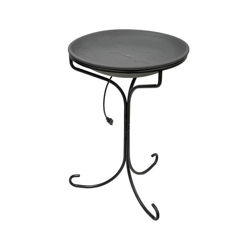 Qty 1 Wild Bird Lover’s Heated Bird Bath with Metal Stand, Slate, 20"