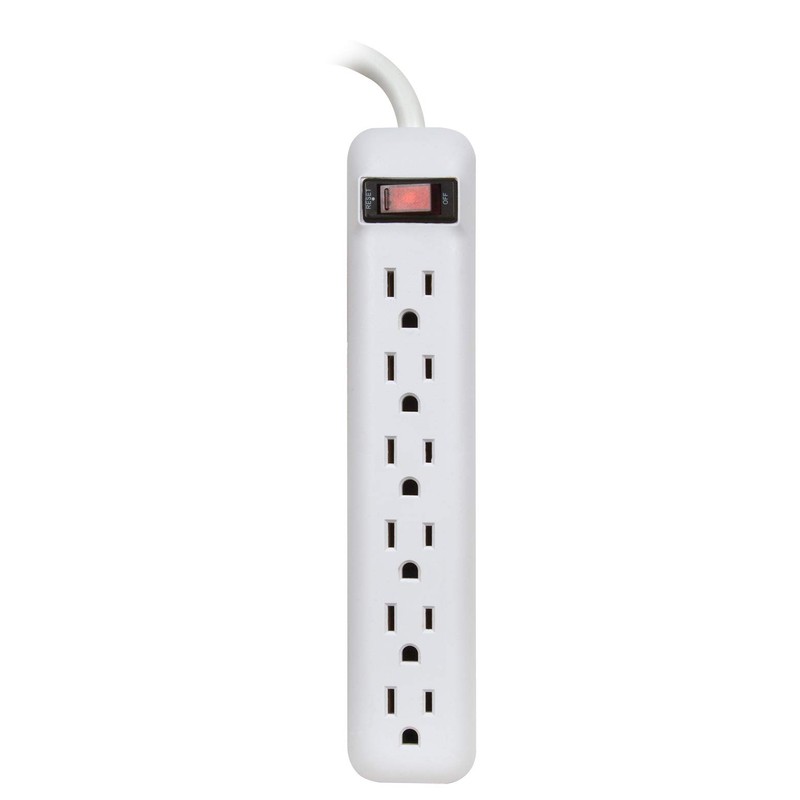 Prime Wire & Cable PB801118 6-Outlet Power Strip with 14-3 SJT 1.5-Feet Cord, White