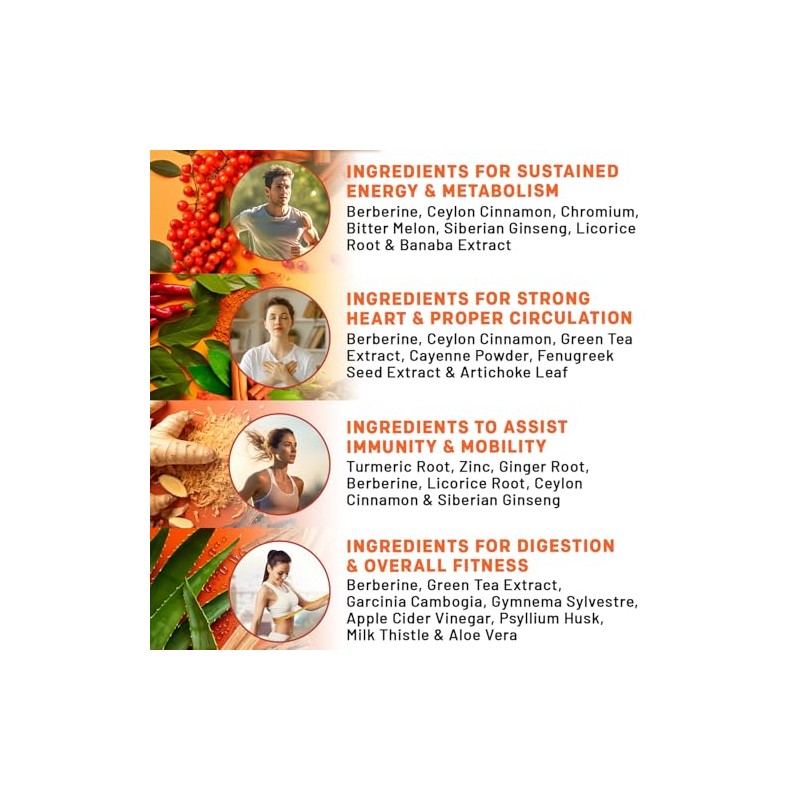 • Total Synergy for Wellness: Our berberine supplements have Ceylon Cinnamon and key natural extracts to help keep you goingCexactly the ingredients for that extra push you need.