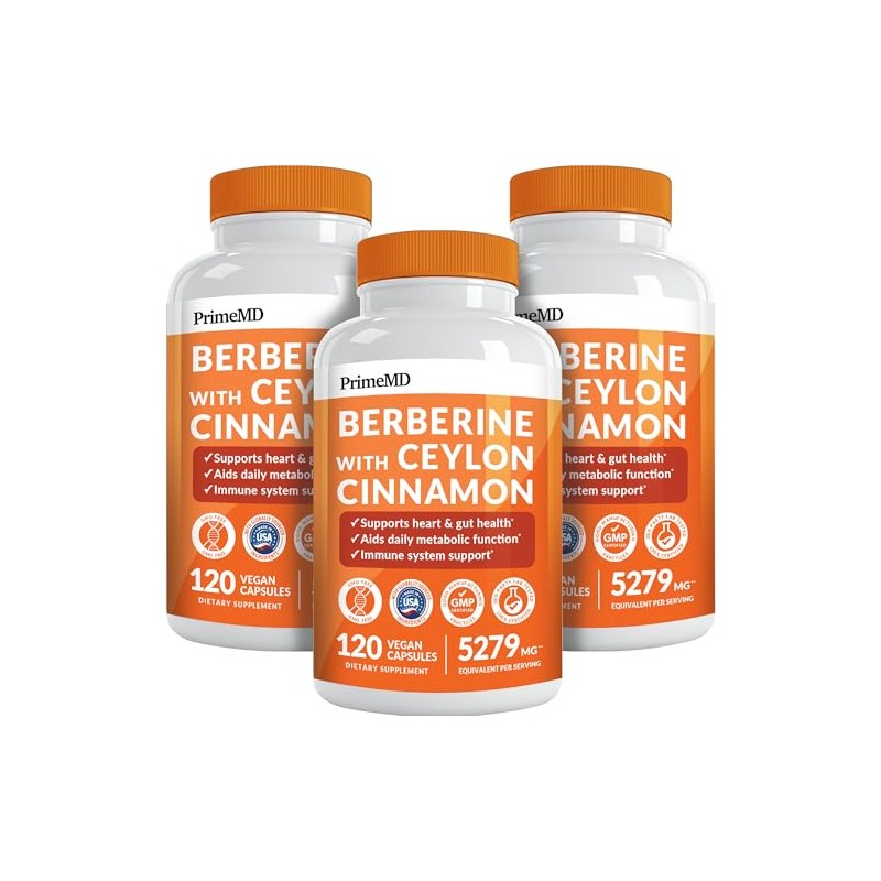 PrimeMD 21-in-1 Berberine Supplement with Ceylon Cinnamon - Berberine 1500mg with Chromium, Bitter Melon and Green Tea Extract - Berberine 5X for Energy & Metabolism Support with 5279 mg (120 ct, Pack of 3)