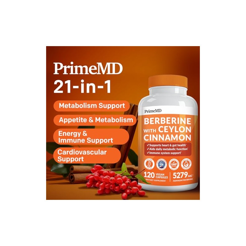 PrimeMD 21-in-1 Berberine Supplement with Ceylon Cinnamon - Berberine 1500mg ...