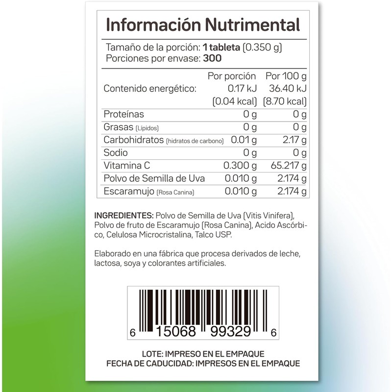 - 🟢 🍃 Cada tableta contiene 300 mg de Vitamina C, la dosis mínima recomendada como suplemento y para que sea benéfica para tu salud.