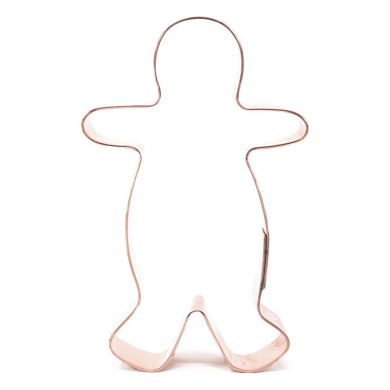 WHAT DO YOU GET? Gingerbread Man cookie cutter, measures approximately 3.25 X 2.25 inches with cookie recipe. MATERIAL: Solid USA sourced copper, doesn’t rust, food safe silver solder. FEATURES: The product is reusable, durable, and hold its shape. Hand made by skilled craftsmen, small business, family owned and operated. The design has sharp and durable edges, no rolled edges for food safety and versatility. Make left or right facing cut out shapes. This product can be used for food at different temperatures, including cold, room temperature, and hot. Heat resistant to 375 degrees MULTIPURPOSE: This tool can be used for many different tasks, including cutting cookies, pastries, dough, fondant, craft clay, pancakes, dog treats, make your own Gingerbread Man shaped DIY tree ornament, and more. SPECIAL OCCASIONS: This lovely piece of art is perfect for all kinds of celebrations, from festivals and birthdays to special occasions like Easter, Christmas, Thanksgiving, Valentine's Day, New Year's Day, Father's Day, Mother's Day, parties, weddings, picnics, holidays, and receptions. ABOUT: To maximize the lifespan of your cookie cutters, we suggest washing them by hand and drying them thoroughly after each use. Suitable for adults and children 8 to 108; should only be used under adult supervision. Thoughtful kitchen and home accessories for mom’s, dad’s, siblings, grandparents, friends, and professional acquaintances Handmade in my Hoosier workshop