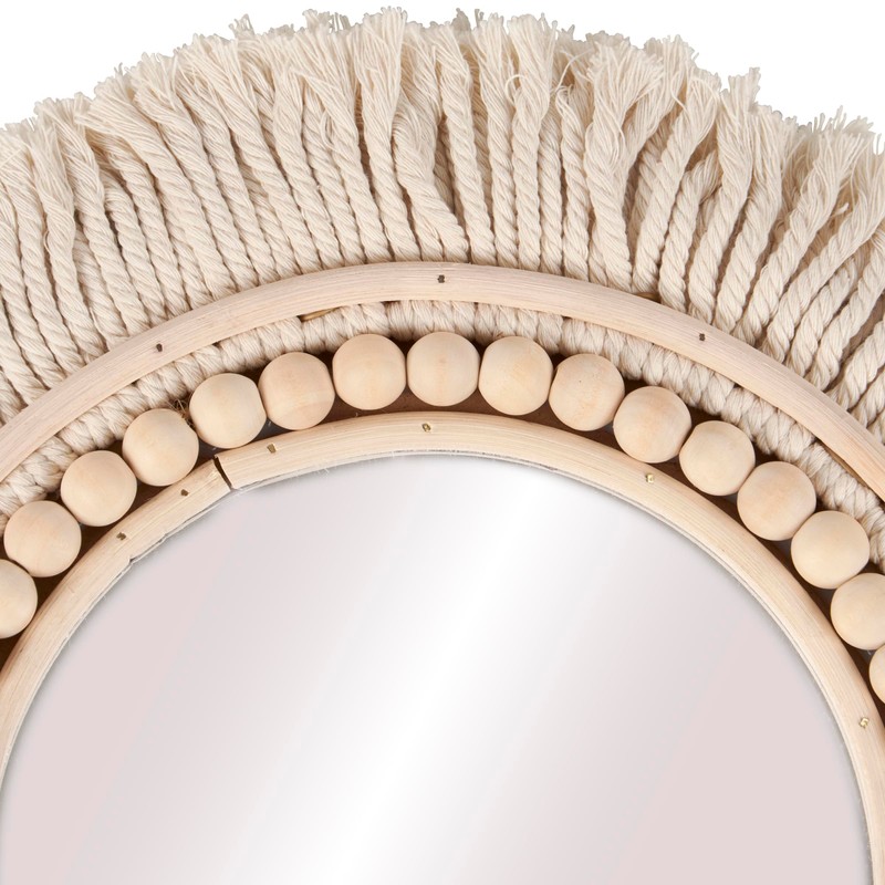 - DECORATIVE MIRROR: Round mirror with decorative beaded fringe border