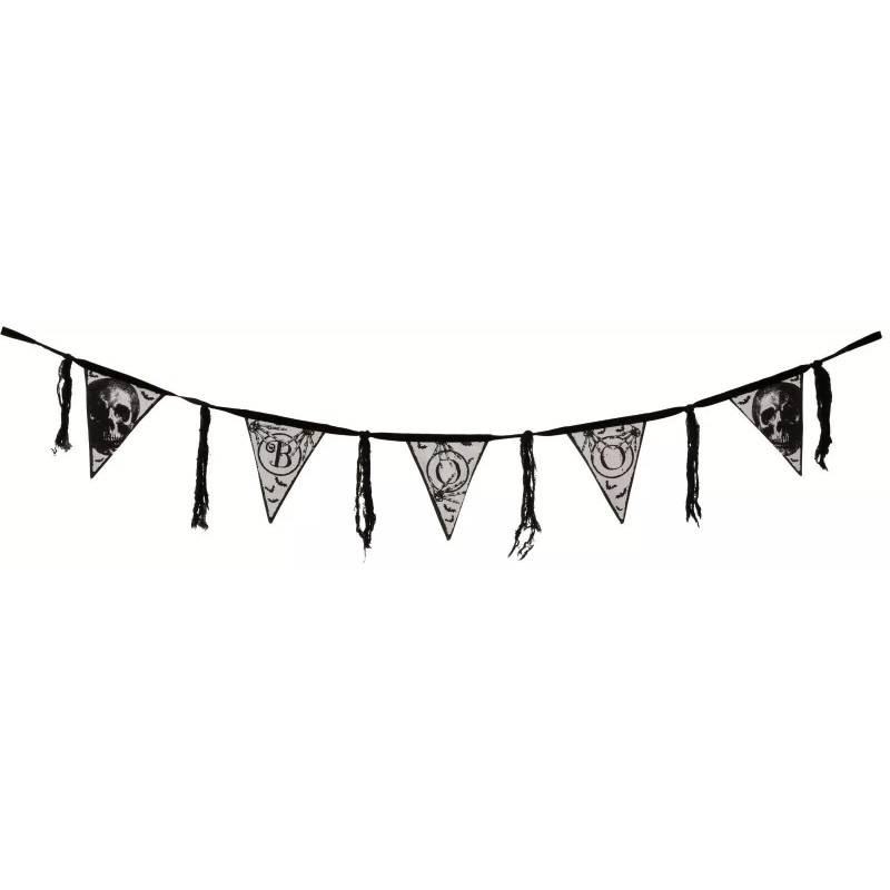 Primitives By Kathy Boo Skulls Garland 64 inches long Black & White Fabric NEW