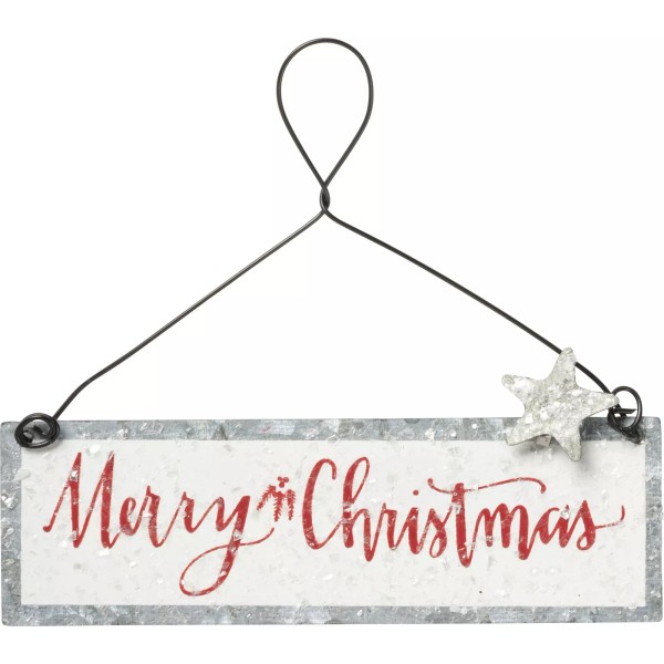 ITEM: Christmas Decor - Prim Merry Christmas Tin Ornament