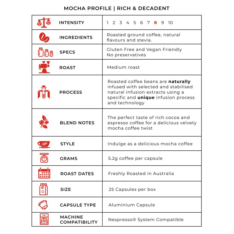 Primo Caffe Mocha Flavoured Coffee Capsules 25/box