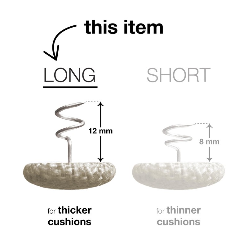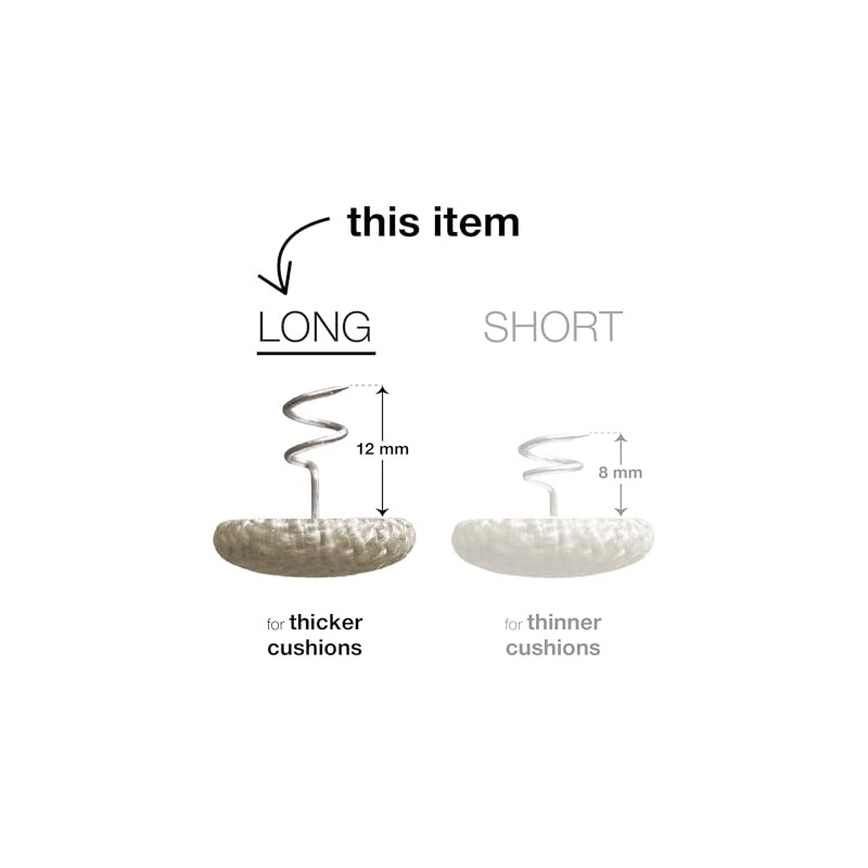 - LONG SPIRAL PIN - Measures 12 mm in length and has 1.5 rotations. Our long pins provide maximum hold on upholstery with thicker cushions.