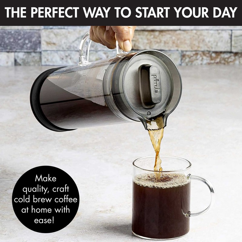 At Primula, we create items by exploring how people prepare beverages in different cultures and work to understand the experience and ritual behind these preparations. Identifying why people love different and unique beverages is the first step in our creative process, and our products are designed to connect with that rationality. Crafted from temperature safe borosilicate glass while utilizing a stainless steel mesh that doesn't alter flavor, our Cold Brew Glass Coffee Maker is an ideal and innovative solution for brewing refreshing, chilled coffee. It produces coffee that's up to 65% less acidic and naturally sweeter than any heat brewed variety, making it the perfect accoutrement for creating rich, smooth, and icy cold cups of coffee to jolt you awake in the morning or to make it through those long summer days. Best of all, the Primula Cold Brew Glass Coffee Maker and its contents can easily be stored away in a refrigerator or freezer for up to 2 weeks without losing any flavor. It also conveniently fits in most refrigerator doors. Get brewing!