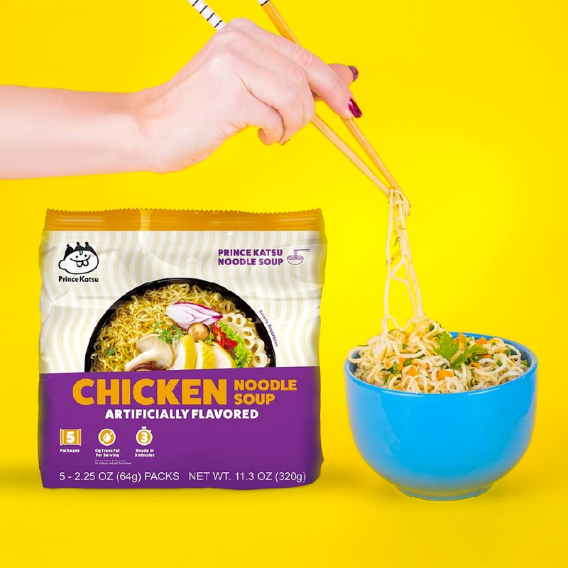 Prince Katsu Gourmet Instant Ramen Noodles, Chicken Flavored Noodle Soup, 8 Pack 40 Servings, Premium Microwaveable Ramen Soup Mix