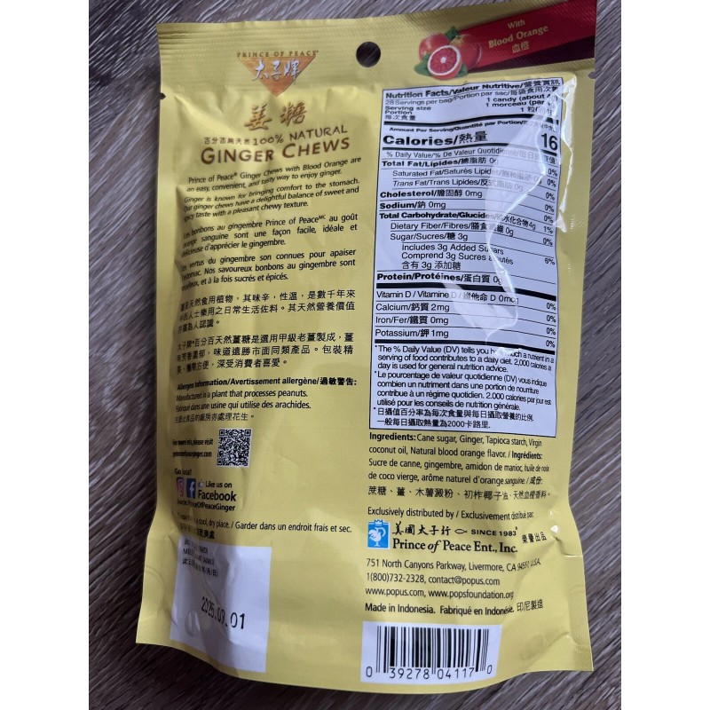 Prince of Peace 100% Natural Ginger Chews/ Poca Ginger Peanut Chew - Original