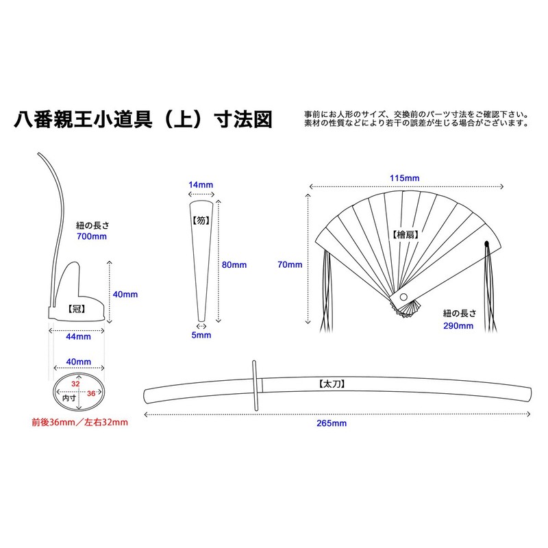 Head: Crown (made of plastic, with string), Scepter (wood), Tatami (aluminum).