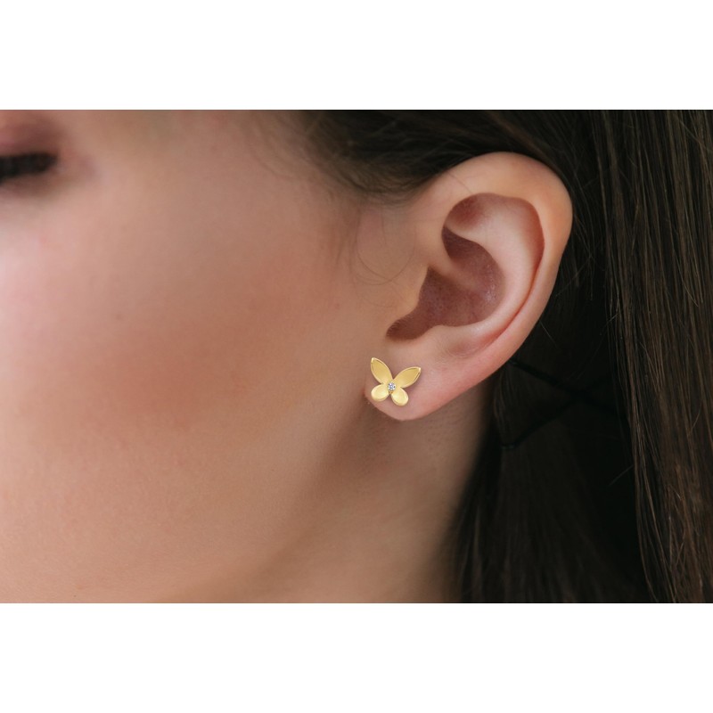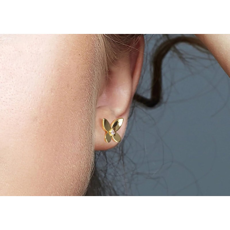 Princess Collection - "Golden Butterfly" - 12.8 mm (0.15 Carat/Pair) Cubic Zirconia 22K Gold-Plated Stud Earrings For Sensitive Ears