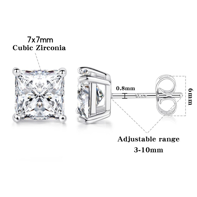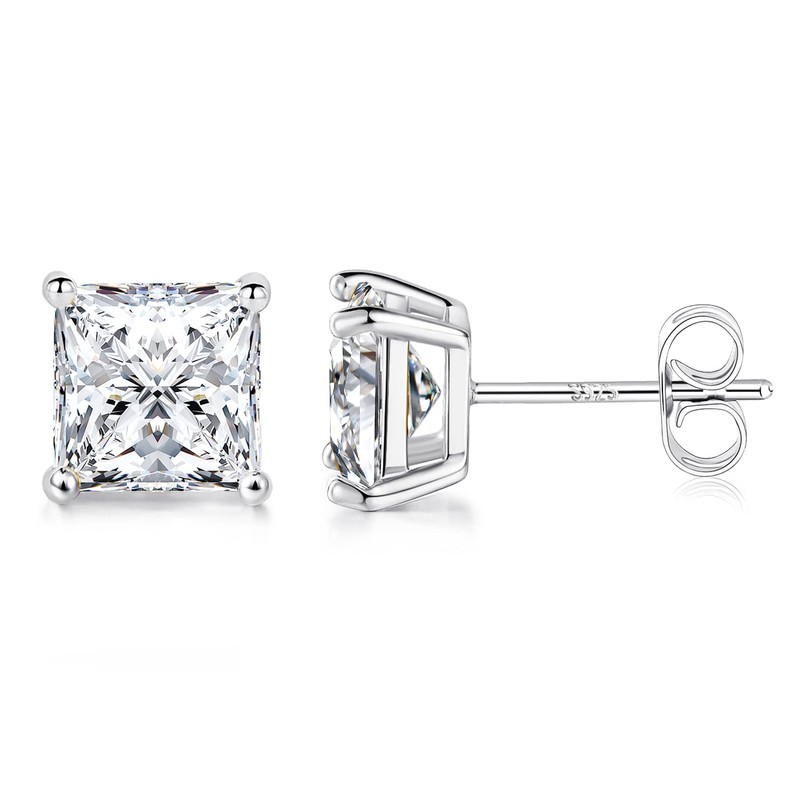 Princess Cut Cubic Zirconia 925 Sterling Silver Post Stud Earrings for Women Men 7mm