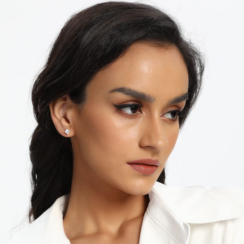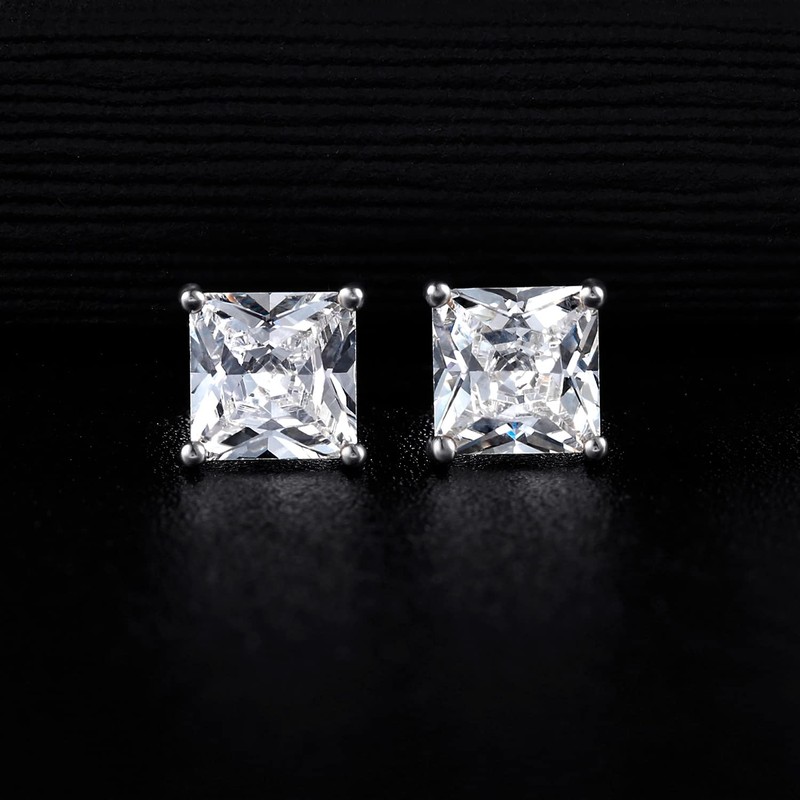 - Silver post and white gold plated with Princess Cut Cubic Zirconia