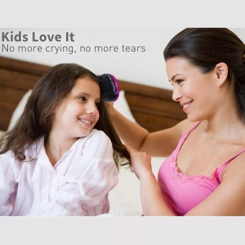 3. Diseño sin dolor Nuestro cepillo desenredante no penetra profundamente en el cuero cabelludo ni arranca el cabello como otros cepillos. Elimina los enredos sin tirar ni lastimar. Su hijo ya no llora ni grita.