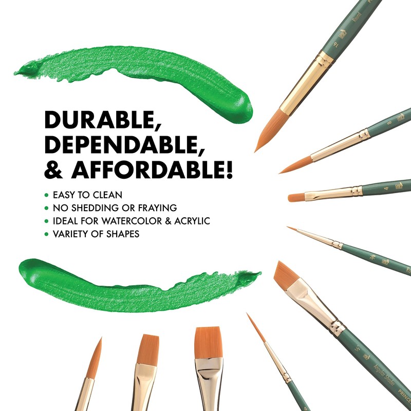 - MULTIPLE BRUSH SHAPES AVAILABLE—With many sizes and shapes for watercolor and acrylic paint projects, including shaders, liners, rounds and more