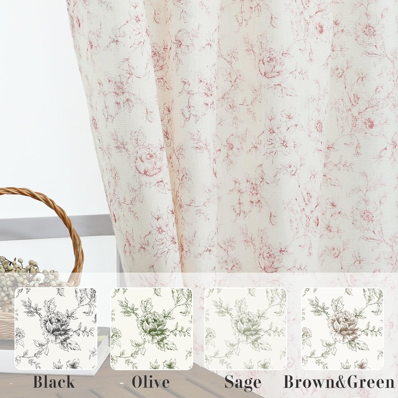 - Semi Sheer Curtains: Lino Rosa floral curtains allow soft natural light to filter through while maintaining privacy and breathability.The lightweight curtains soften harsh sunlight, creating a warm and inviting ambiance without making the room feel dark.