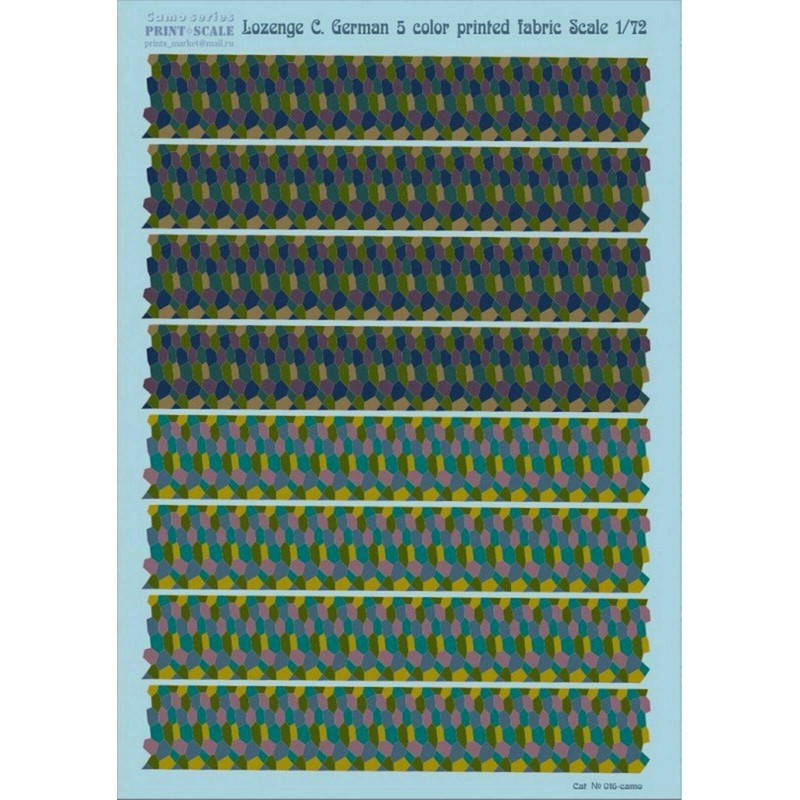 Print Scale 016-camo - 1/72 Lozenge C. German 5 Color Printed Fabric Wet Decal