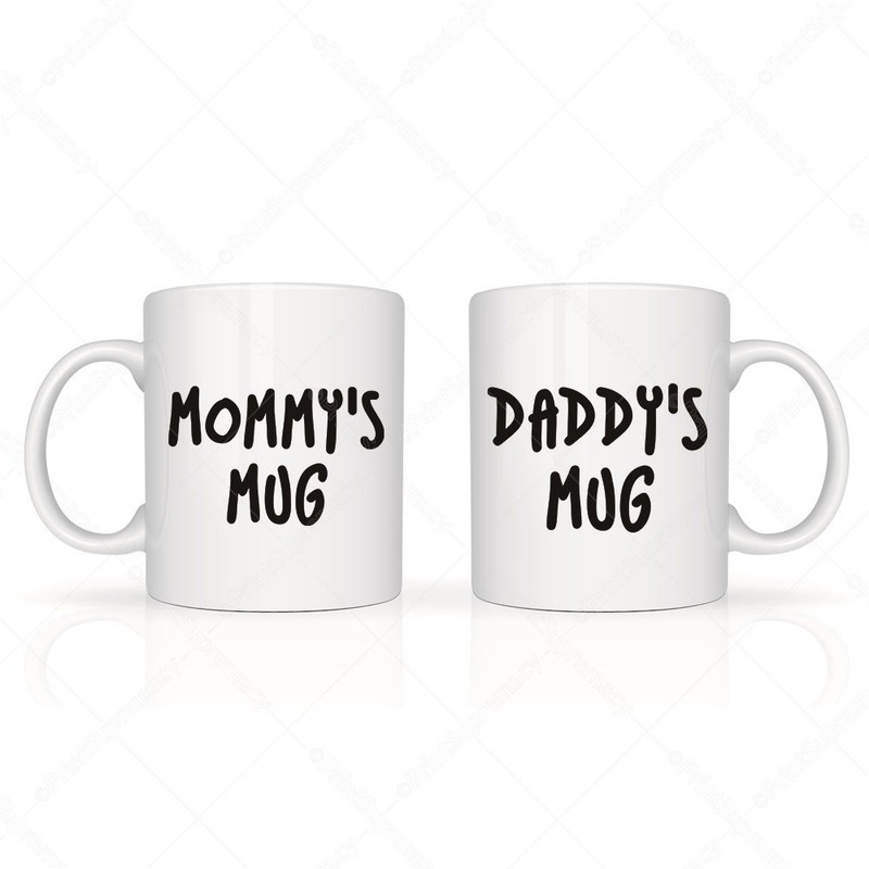 Mommy's & Daddy's Mug Set Mug Daddy, anniversary options for parents, Coffee Mugs Set, Mom Coffee Mug, Mug Present Set, Mugs For Mom, Tea Mug, Family present,2 Mug Set. A nice present for baby showers and soon-to-be parents. Removable lid for keeping drink warm. 11oz ceramic mug, glossy, good for any warm beverage. Simple-to-grip handle & steady base allow for pleasant sipping. Double sided print, simple to clean.
