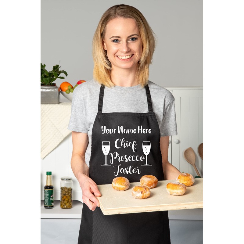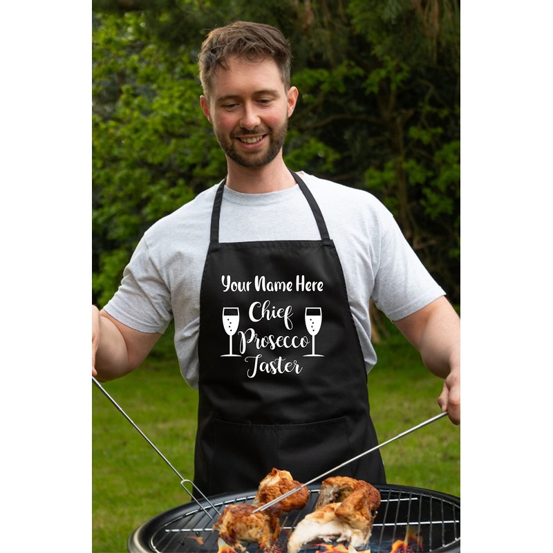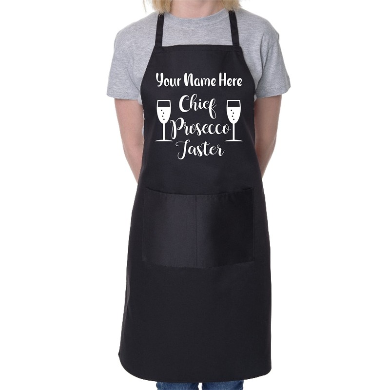 Print4U Customise This Apron Chief Prosecco Taster Any Name Here BBQ Cooking Black