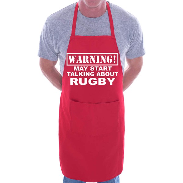 Print4U Warning May Talk About Rugby Fan Funny BBQ Novelty Cooking Apron Red