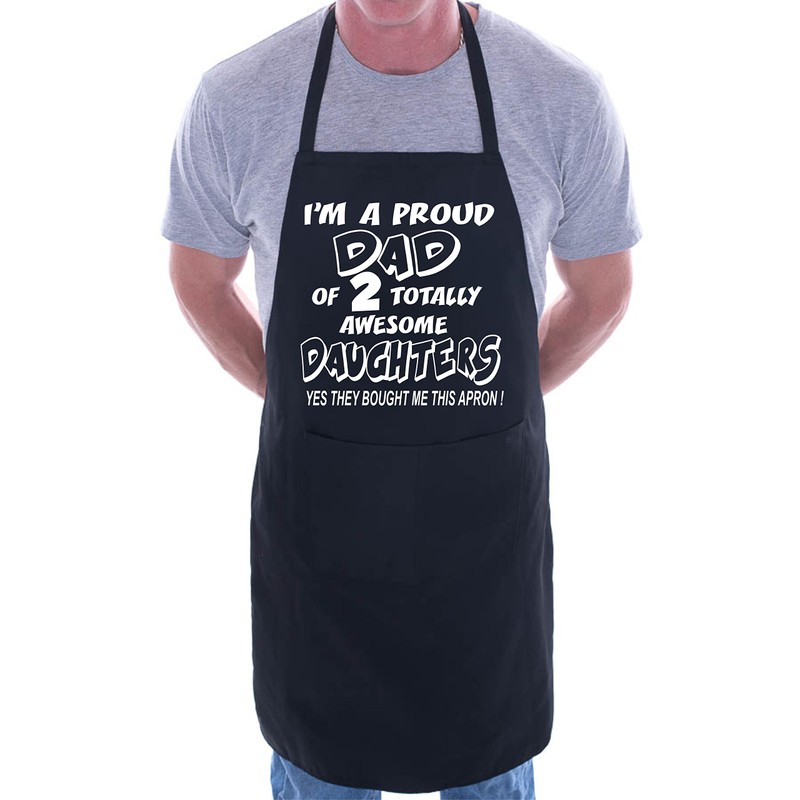 print4ucouk Proud Dad Of 2 Awesome Daughter BBQ Cooking Funny Novelty Apron Black