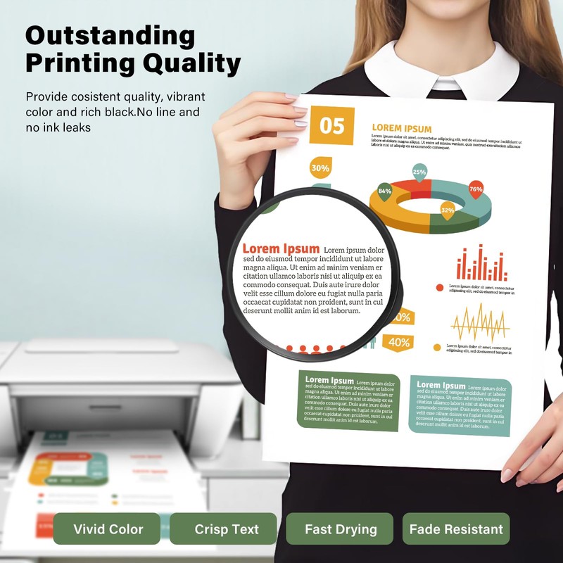 Print Quality: We understand the importance of print quality, and Aimery ink cartridges use high quality inks that deliver vibrant colors, rich blacks, sharp text, and crisp images to give your prints a professional finish. Whether it's everyday documents, reports, presentations or precious photographs, they'll turn out perfectly.