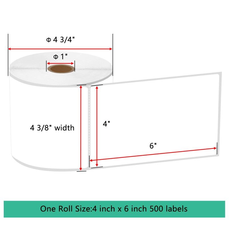 - Labels measure: 4 inches x 6 inches- 1" Core