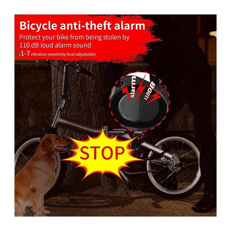 👍 Anti-theft Vibration Alarm (with 7 adjustable sensitivity) 👍 Loud 110dB Bike Horn (with 3 horn tones) |