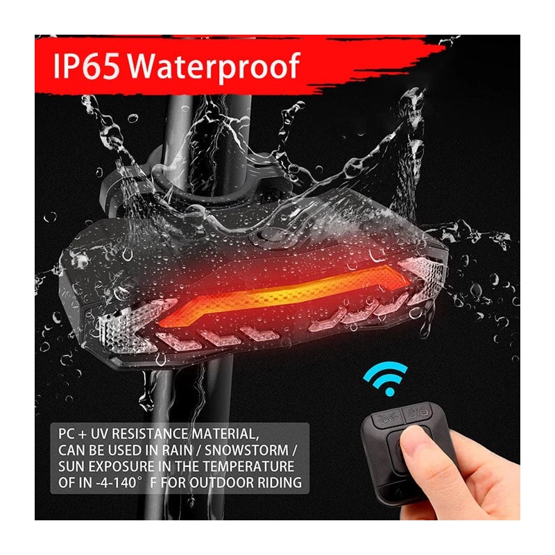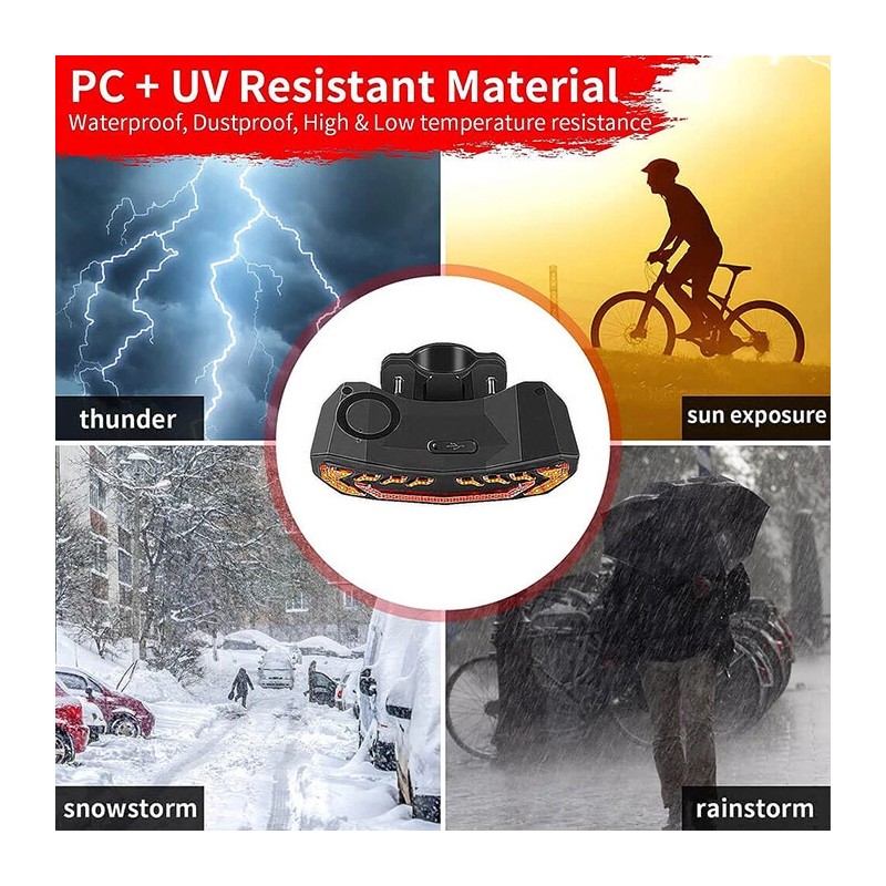 IP54 Waterproof level make this bike turning light can be used in small to moderate rain in the temperature of in -4-140°F --The production adopts high-quality PC + anti-UV material, waterproof and dust-proof, high/low temperature resistance, not afraid of wind and rain/severe cold/ scorching heat.