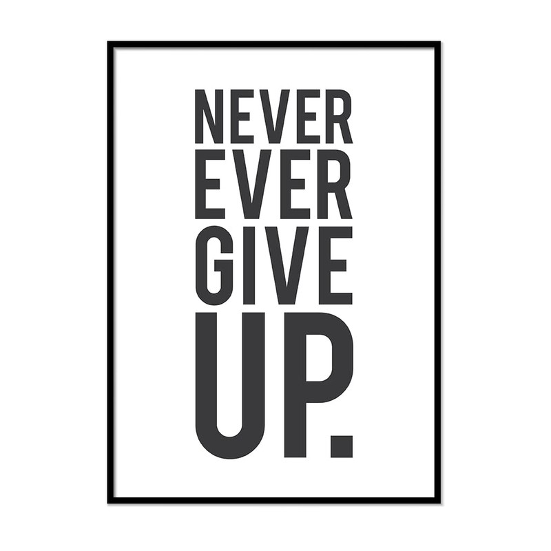 Printers Mews Never Ever Give Up. Positive Quote Art A4 Print Only 21 x 29.7cm (8.3x11.7inch)