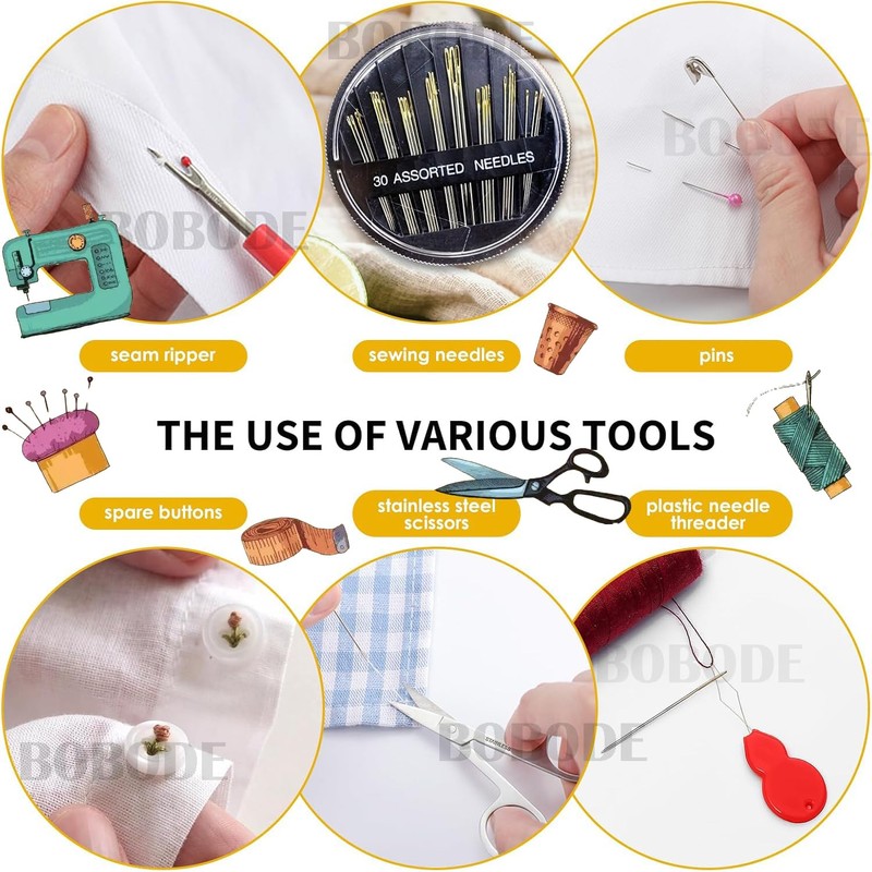 - EASY to USE:This Basic sewing kit Included most accessories to solve sewing for daily needs, no need a sewing machine, easy to use for adults, beginners.A perfect needle and thread kit for Home, Travel, Emergency, Camping.