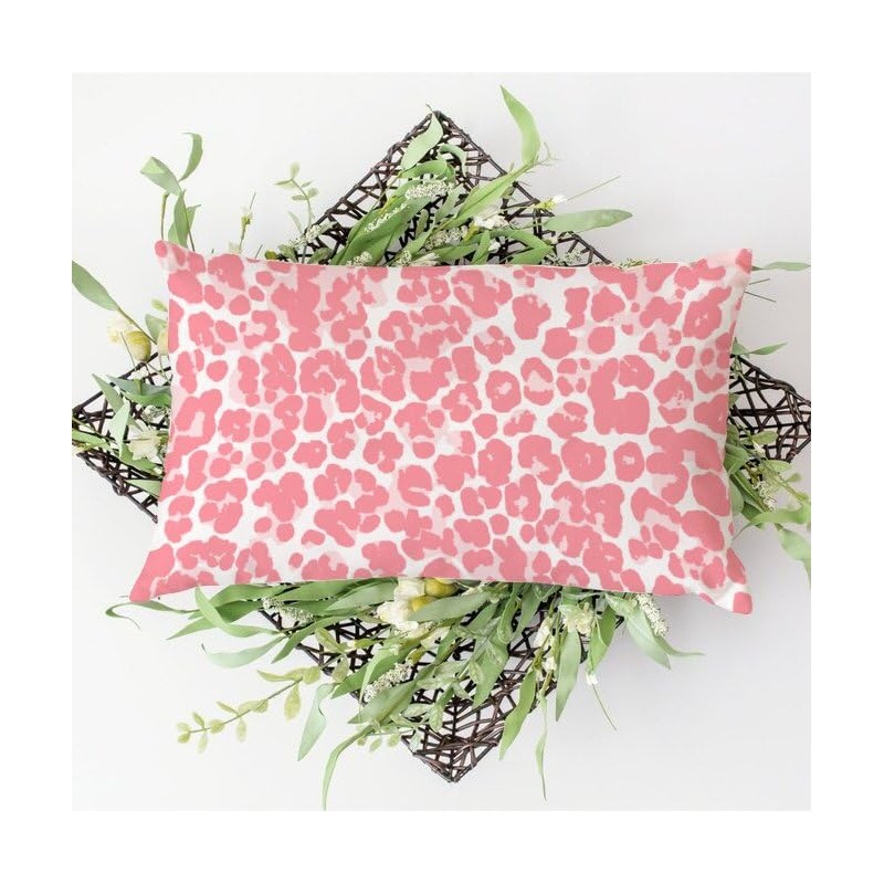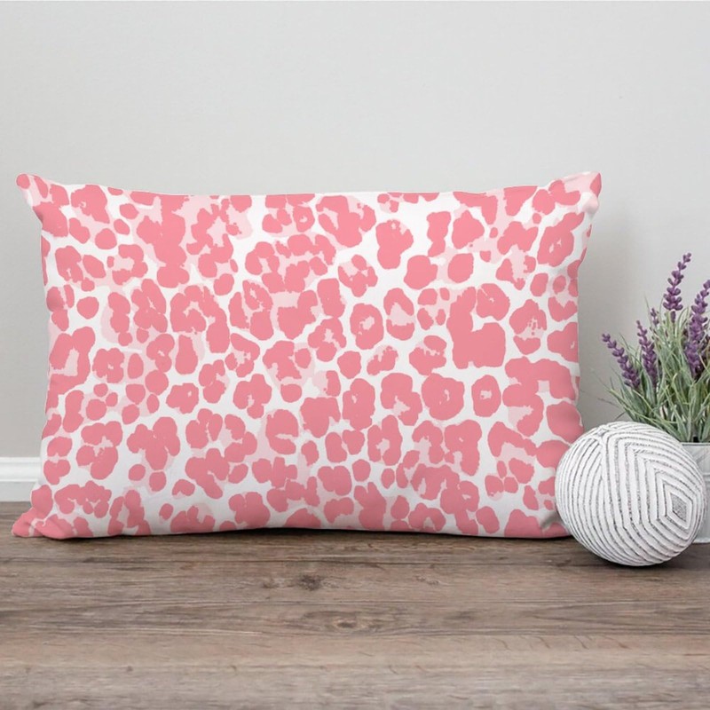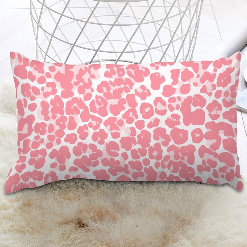PrintingCo Throw Pillow Cover Pink Cheetah Leopard Print Lumbar Pillow Cases Animal Skin Fur Decorative Pillow Home Cotton Linen 12x16in Retro Rustic Cushion Cases for Farmhouse Home Couch Decor