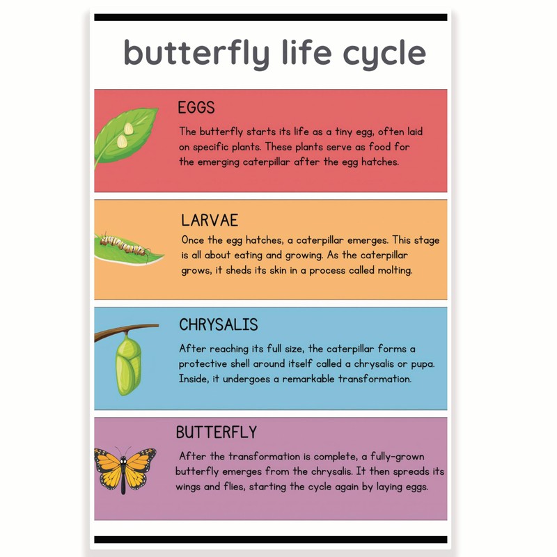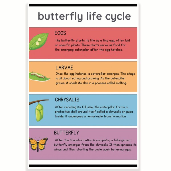 Printlabz Butterfly Life Cycle Classroom Poster - Butterfly Growth Poster - Science Class - 12 x 18 Inch - Classroom Decor - Classroom Must Haves - Back To School Decor - CPS0321