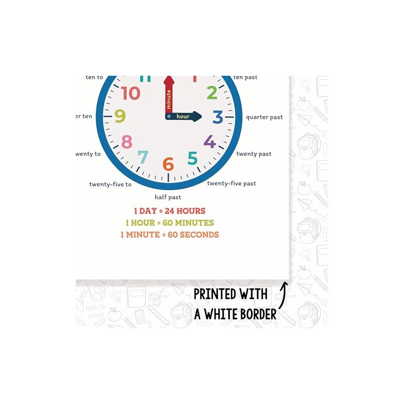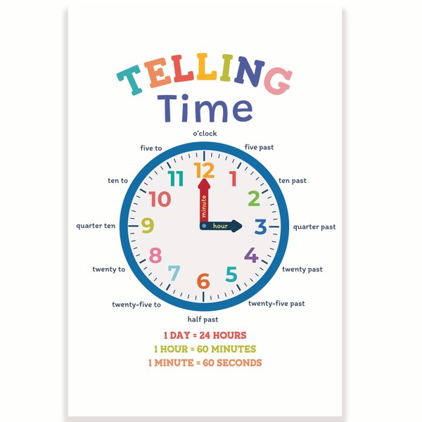 Printlabz Teling Time Learning to Read a Clock Classroom Poster - Learning Time Units - 12 x 18 Inch - Classroom Decor - Classroom Must Haves - Back To School Decor - CPS0164
