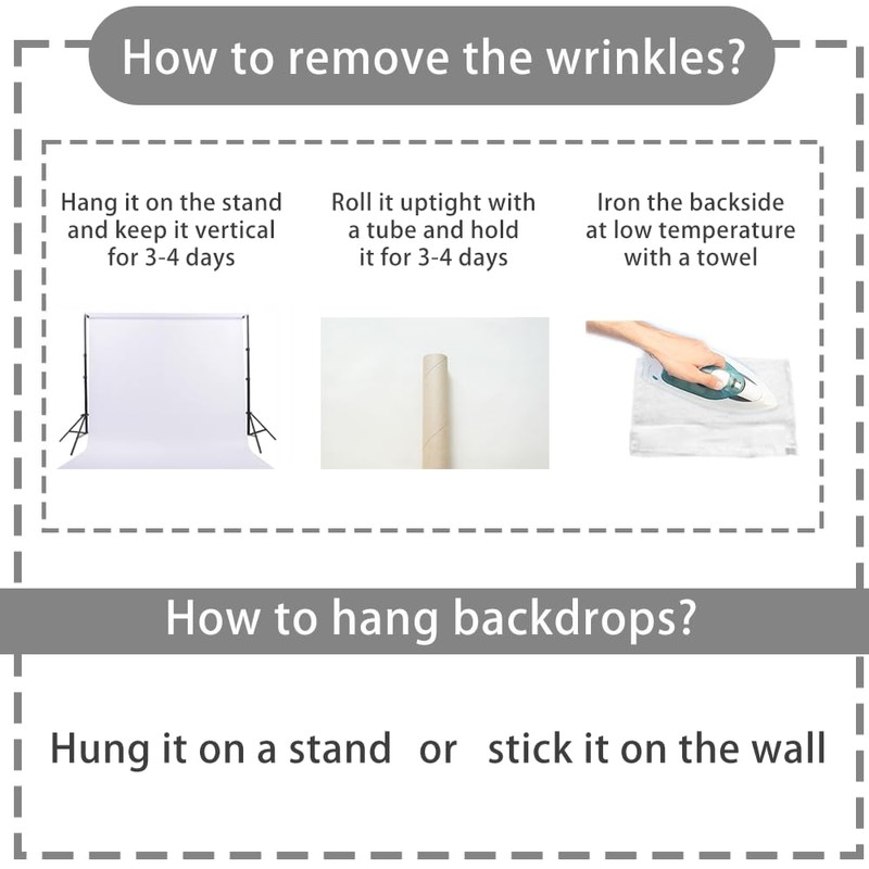 - Packaging Tips: Please note that pole pocket clips thumbtacks and tape are not included in the package. Additionally, any shipping creases can be easily smoothed out by ironing, steaming, or wrapping the backdrop around a cylinder before your event