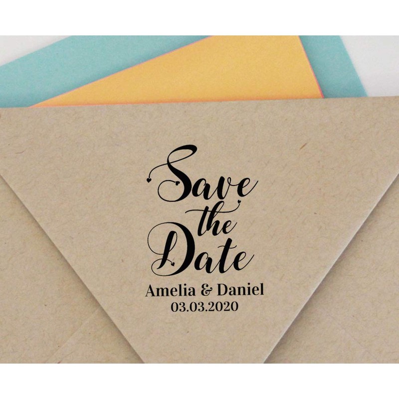 Printtoo Personalized Black Self Inking Save The Date Rubber Heavy Duty Stamp Wedding Round Custom Stamper-45 mm