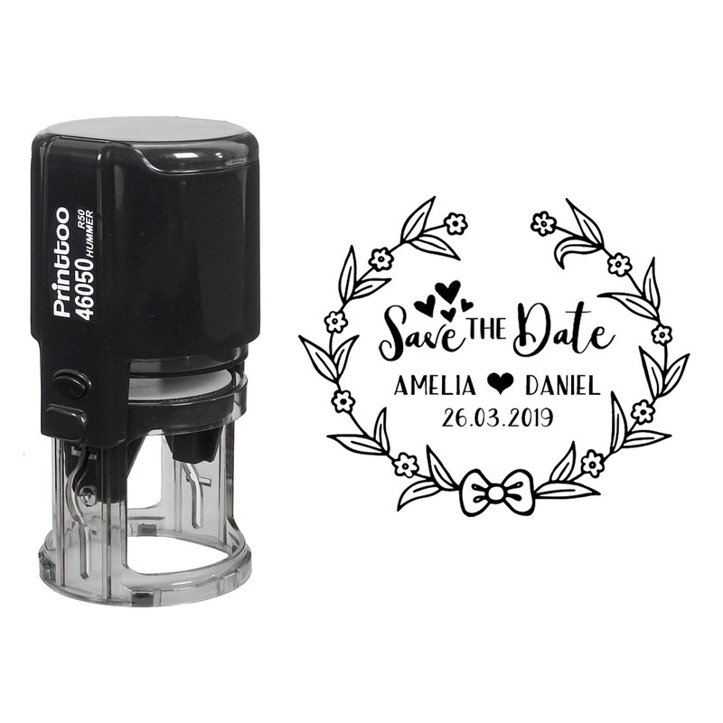 Printtoo Self Inking Round Custom Save The Date Rubber Stamp Floral Wreath Personalized Stamper Gift Idea