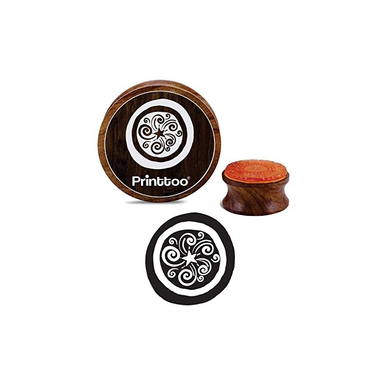 - ✅ A beautiful wooden rubber stamp with round Star & Swirls Design Design by PRINTTOO