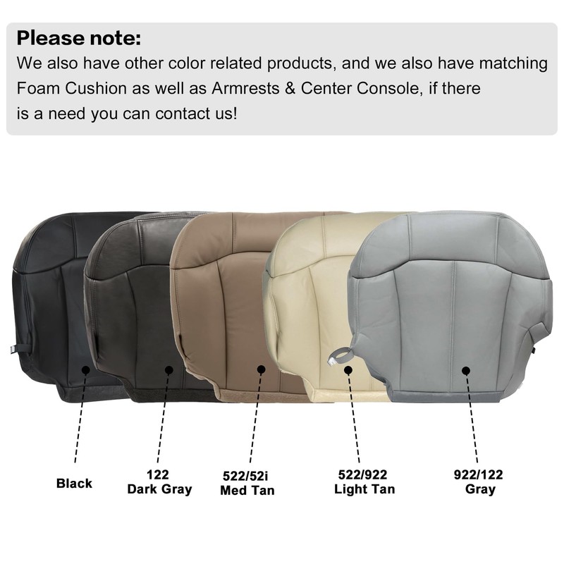 Priprilod Leather Med Tan 522 or 52i Passenger Side Top Lean Back Replacement Seat Cover Compatible with Chevy Silverado Sierra Avalanche 1999 2000 2001 2002