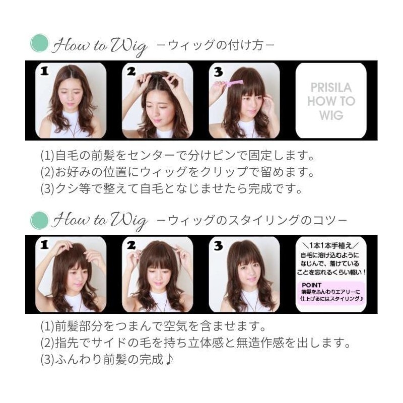 Priscilla TFX-104-TDB Fluffy Hand Planted Whole Bangs Wig, Natural Bangs, Heat Resistant, Dark Brown
